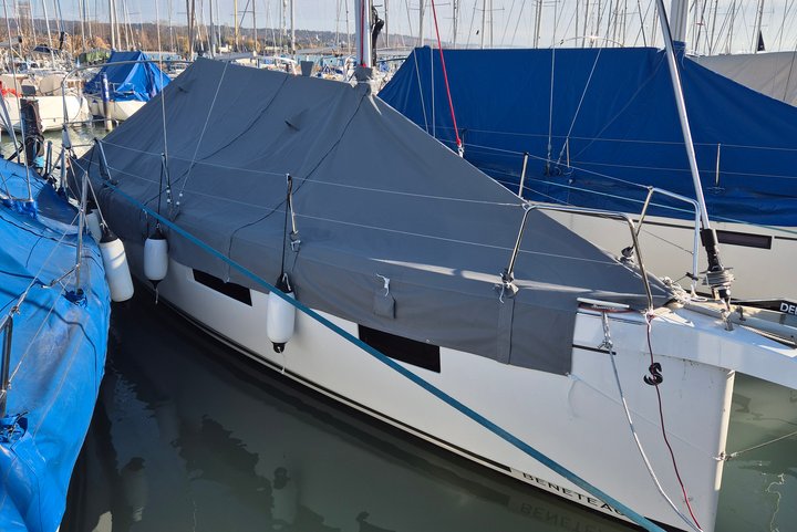 A focktakaró egy összehúzó kötélrendszerrel könnyen felszerelhető és jól védi a vitorlát